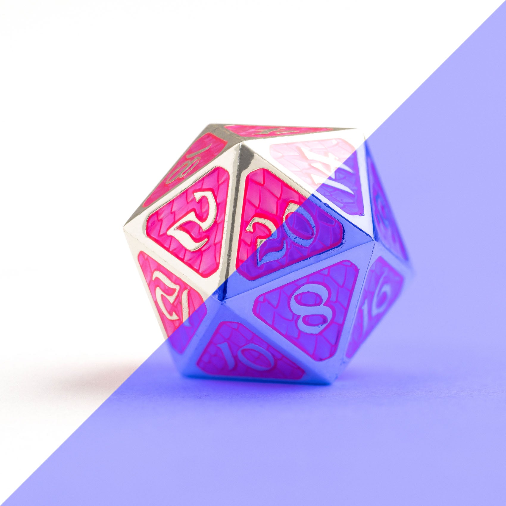 Available in an 11-piece set, 7-piece set, Dire d20, single d20, and single d6!