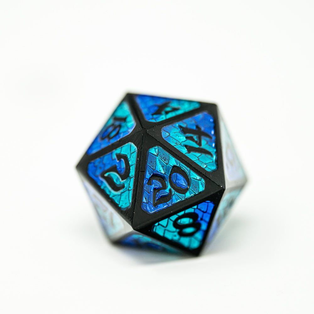 Available in an 11-piece set, 7-piece set, Dire d20, single d20, and single d6!