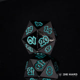 Available in an 7-piece set, Dire d20, single d20, and single d6!