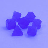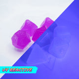 Every adventure party needs a little light in dark places sometimes! Kick your party off with AfterDark Avalore Purple Rain: UV reactive dice that illuminate brilliantly under blacklight! Inspired by roller rinks, diner jukeboxes, and celebrations, AfterDark Avalore is sure to brighten the table mood at your next tabletop roleplaying game!