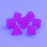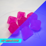 Every adventure party needs a little light in dark places sometimes! Kick your party off with AfterDark Avalore Radio Star: UV reactive dice that illuminate brilliantly under blacklight! Inspired by roller rinks, diner jukeboxes, and celebrations, AfterDark Avalore is sure to brighten the table mood at your next tabletop roleplaying game!