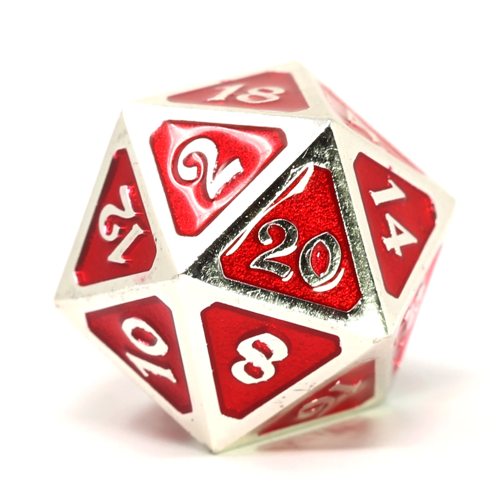 Single d20 - Mythica Platinum Ruby by Die Hard Dice