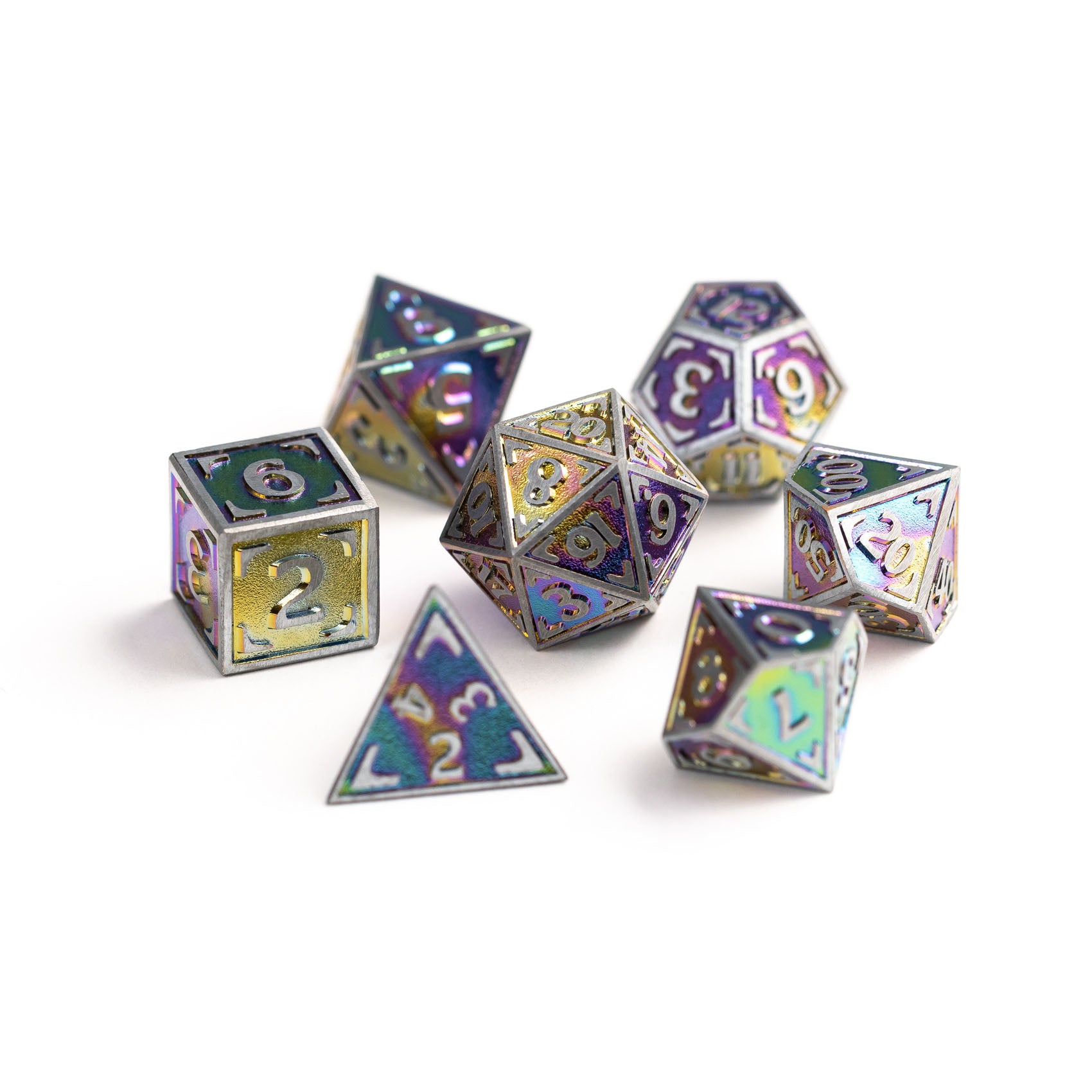 All our metal sets come with a protective case that can also be used as a small dice tray.